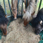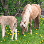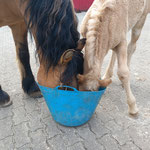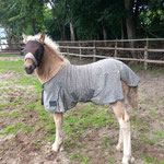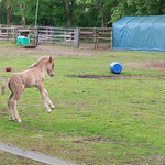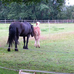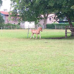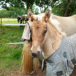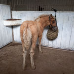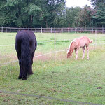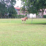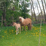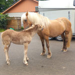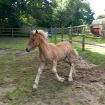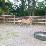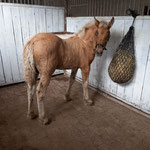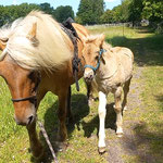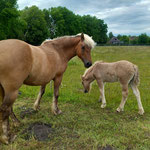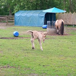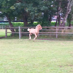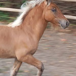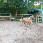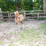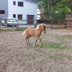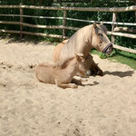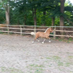 Dieses kleine Püppchen ist wunderschön anzusehen, mit ihren sehr langen blonden Wimpern und dem bezaubernden Gesicht. Sie hat einen enormen Bewegungsdrang. Sie hüpft und springt umher wann immer sie wach ist und nicht bei Mama trinkt. Sie ist auch schon enorm kräftig, harmonisch und gut bemuskelt. Atisha ist jetzt schon ganz vernarrt in Gil, ihren Urgroßvater. An uns Menschen ist sie noch nicht so interessiert, lässt sich aber schon brav das Halfter an und ausziehen und die Hufe säubern.