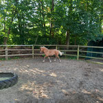 Brav läuft sie auch im Gelände bei Mama angebunden mit. Inzwischen liebt sie ihre Streicheleinheiten und ist Fremden gegenüber deutlich neugieriger und lässt sich auch von ihnen streicheln. Atisha ist ein sehr selbstbewußtes und stolzes Mädchen und eine absolute Schönheit!