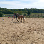 Da der junge Mann gerade sehr schön harmonisch gebaut ist, haben wir die Chance ergriffen und Candamir zweijährig dort vorgestellt. Es blieben uns zwar nur knapp drei Wochen Zeit ihn auf die Veranstaltung vorzubereiten, aber Candamir hat alles toll gemeistert.